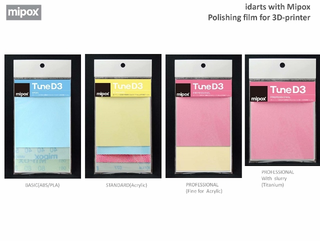 Mipox配合3D印刷物材質不同,開發不同的表面研磨製程,已有基本型(for ABS,PLA),標準型(for Acrylic),專業型(for fine Acrylic & Titanium)的區分,後續仍會繼續研發,配合3D業界的需求,歡迎業界洽詢。
