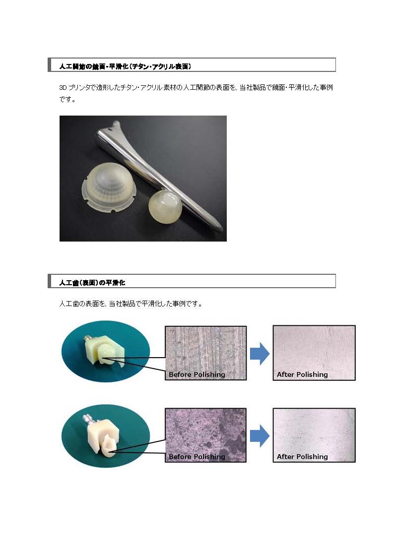 人工關節之鈦金屬,亞克力部品,人工齒研磨實例照片