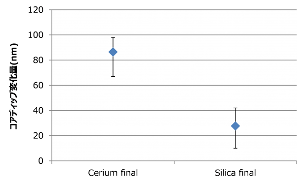 It is final polishing film for the MT connector which coated nanosilica on the pile surface.Because the chemical scouring with the conventional cerium abrasive did not occur, We can largely reduce core dip malfunction after final polish.